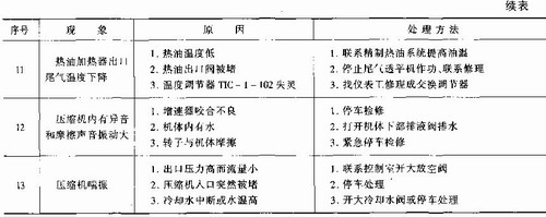 由于PTA裝置反應溫度高、壓力高,因此在PTA裝置熱媒加熱系統和反應器系統易發生事故的部位較多,主要表現為熱媒加熱系統管線、閥門的磨蝕而引發的設備問題。常見事故及處理見表3—36—1、表3—36—2、表3—36—3。