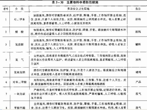 主要危險危害的防范措施列于表3—34、表3—35。
