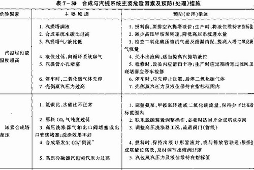合成與汽提系統(tǒng)存在的主要危險(xiǎn)因素及預(yù)防措施,見表7—30。