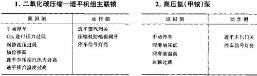尿素裝置聯(lián)鎖系統(tǒng),主要設(shè)有二氧化碳?jí)嚎s—透乎機(jī)組停車聯(lián)鎖和高壓氨(甲銨)泵停車聯(lián)鎖。
