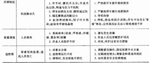 裝置運行中,常見的事故有高壓設備腐蝕泄漏;二氧化碳壓縮機振動大;循環及蒸發系統發生的結晶堵塞以及高溫液體泄漏、排放、沖冼造成的人員燙傷等。詳見表7—37。