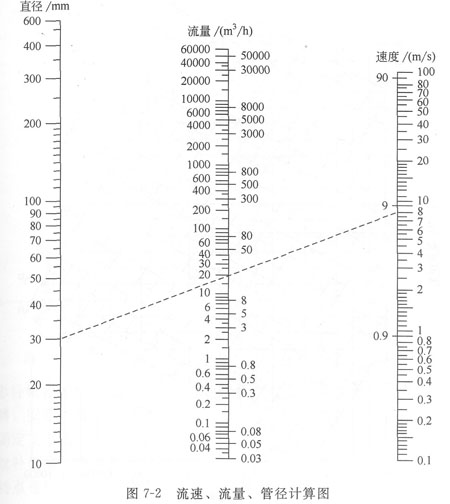計算管道壓力降的目的是為了選擇合適的泵、壓縮機、鼓風機等輸送設備和校核流速或管徑。最常用的方法是利用計算圖進行計算,如對于常溫的水,流經鋼管時的壓力降可由圖7—3直接查得;對于非常溫的水或其他液體只要將按水查得的壓力降,乘上表7—11所列的校正系數,即可得該液體的壓力降。