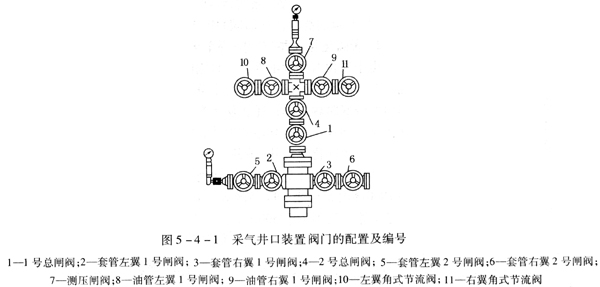 ① 采氣井口裝置閥門的配置及編號如圖5-4-1所示。