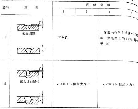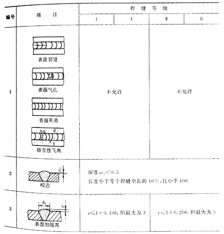 | 1 | 裂紋 | 不允許 | 不允許 | 不允許 | 不允許 | |