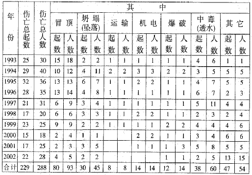 ????礦山1993-?2002年傷亡事故統計表