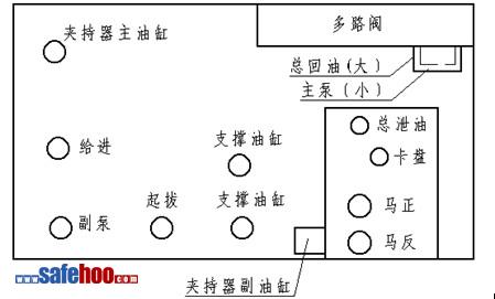 d. 卡盤回油管(13Ⅱ-5000A)——通徑13mm,長5m, 連接油箱側面的直接回油口接頭之一和主油路板總泄油接頭。