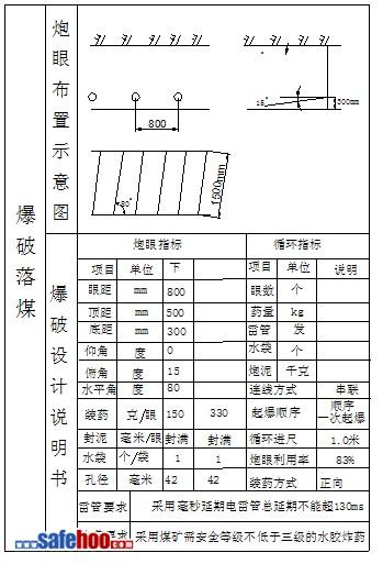(9)當采煤出現(xiàn)瞎炮時,在瞎炮位置上下500mm左右的位置重新布置一個孔1.5m,Ø42鉆孔,執(zhí)行一次爆破程序。