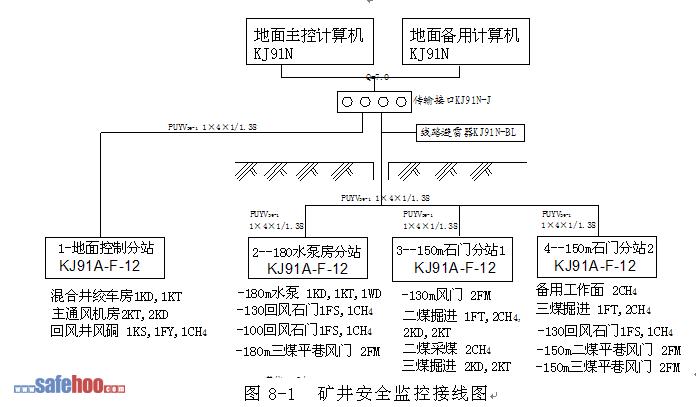 礦井使用的KJ91N監(jiān)測監(jiān)控系統(tǒng)產品應符合原煤炭部“安全標志”的工廠生產技術條件規(guī)定的各項要求以及各項技術標準和相關國家標準。監(jiān)測監(jiān)控系統(tǒng)在地面中心站配備了二臺主機,互為備用,監(jiān)測監(jiān)控系統(tǒng)的電源按二級負荷進行設計,并配置UPS電源,保證了系統(tǒng)的不間斷工作。井下分站在布置上均安放在環(huán)境相對較好的地方,傳感器布置在即能滿足工況要求又無滴水和相對安全的地方,以保證工作的可靠性,所有的分站和傳感器都具有防爆合格證,滿足井下使用條件,并且是經過使用反映較成熟產品,從而確保系統(tǒng)安全可靠地運行。