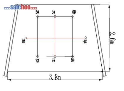 1、 二1-12051切眼在施工過程中布置瓦斯釋放孔共8個,孔徑Φ75mm,單孔孔深10米,共兩個循環,一循環打十字形(1#、2#、3#、4#),二循環打矩形(5#、6#、7#、8#),保持5米超前距。(如下圖)