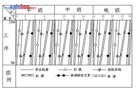 采用三八制作業,因工作面傾向長為30m,所以一個小班兩個循環,循環進度為1.6m。