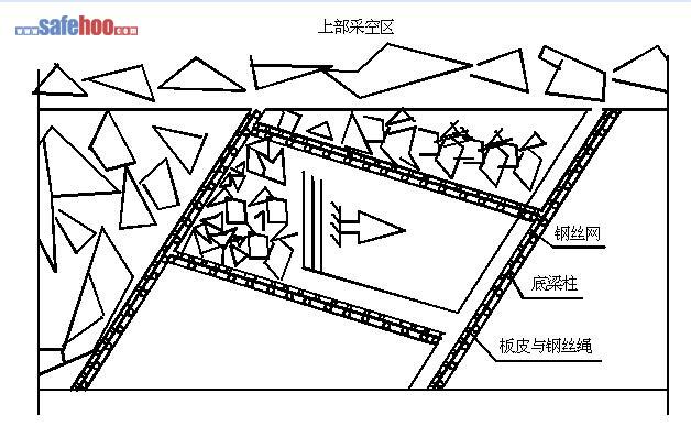 5.3.3出煤時,作業人員必須經常檢查防護柱的牢固程度,并使用長柄三角扒作業,人員嚴禁進入防護以內的采空區作業。
