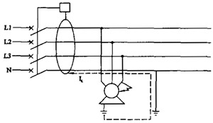 負載側的中性線不能重復接地,如果漏電保護器后N線再重復接地,如圖3所示,當發生接地故障時,漏電電流矢量和的一部分經N線接地處返回電源,使漏電電流矢量和小于漏電保護器的動作值,漏電保護器拒動。