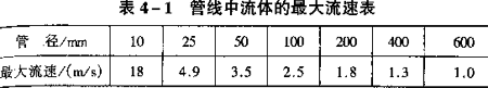 (1)絕緣性液體產生的流動靜電大體上與其在管道內的流速平方成正比,因此管線中液體的流速對起電影響很大,管線中液體的最大流速可參考表4—1。