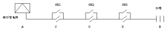 這種方法雖然時間長但很有效。拉開隔離開關前,必須確認絕緣錨段關節技術狀態良好。如下圖,若供電臂AB設備故障,原因查找困難則,先按二分法斷開GK2,對AO段進行強送電,若失敗則該段故障;若成功則OB段故障。對前一種情況,先斷開GK1,對AC段強送電,若失敗則該段故障,若成功則CO段故障。對后一種情況,先合上GK2,斷開GK3,對AD段強送電,若失敗則OD段故障,若成功則DB段故障。在拉隔離開關強送電過程中,應有供電專業人員在被送電區段注意接觸網設備狀態,對有關信息(異常聲、光、電現象),及時反饋并確定故障點。