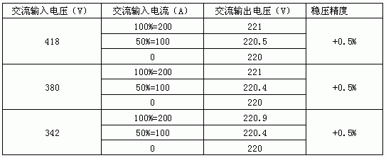 第三,由穩壓調壓器穩壓精度與投產前試驗數據(如下表)比較結果證明穩壓調壓器工作失穩,導致電壓波動不穩定使靜態開關自動關斷;所以穩壓調壓器需嚴格檢修、檢查。
