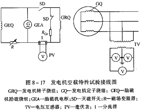 發(fā)電機空載特性試驗接線如圖8—17所示。