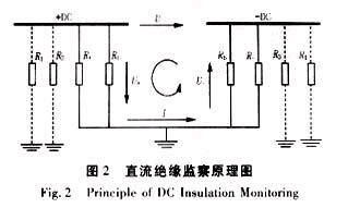 U=U++U-,當直流母線對地絕緣良好的條件下,存在R-≈R+≈∞的關系, (實際情況由于負電源延伸范圍廣,R-略小于R+),得出直流正負母線對地實際絕緣電阻:R=R+∥Rb≈R-∥Rb≈Rb的結論。