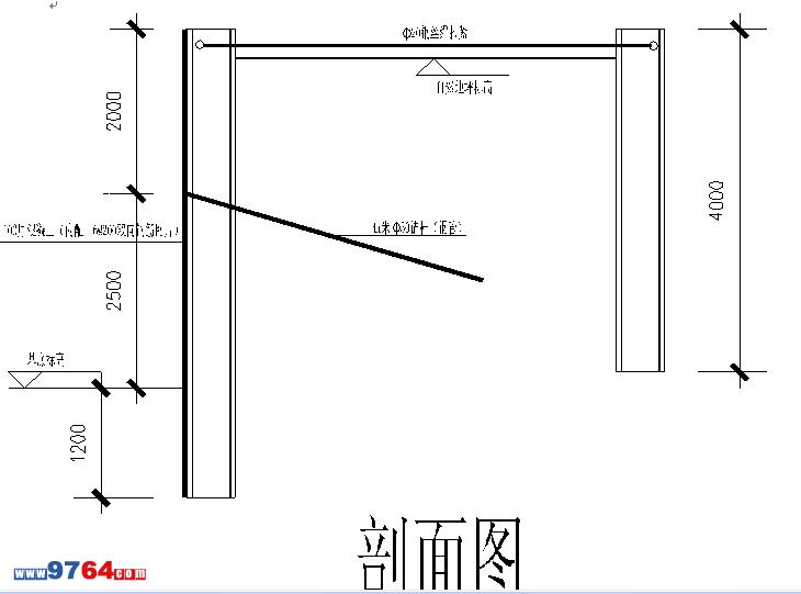根據現場實際情況,高壓電線桿周邊打型鋼支護,型鋼采用20#工字鋼,每側高壓電桿1.5米位置設工字鋼,間距為400mm ,工字鋼埋深位置進入底板向下大于1.2米土層內。在北側跟電桿3.0米施工道路邊位置設置工字鋼拉結點,工字鋼埋深4.0米,采用Φ20鋼絲繩及相匹配的花籃螺絲拉緊。型鋼在土方開挖前預先打入地下,鋼絲繩拉緊,基坑土分層開挖,在基坑2.0米位置,采用4.0米長Φ50錨桿(鋼管)錨入土體內,與工字鋼相連。在工字鋼外側支模灌注100厚C20混凝土,內配Φ6@200雙向鋼筋, 與基坑土方開挖同步進行。