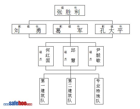 1.成立現場安全生產管理小組,項目經理任組長,專職安全員為副組長,建立包括項目各專業工長、施工作業隊班組長的安全職能體系。