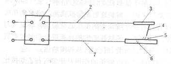 1―電焊機(jī) 2―軟電纜 3―焊鉗 4―焊條 5―電弧 6―工件 7―地線