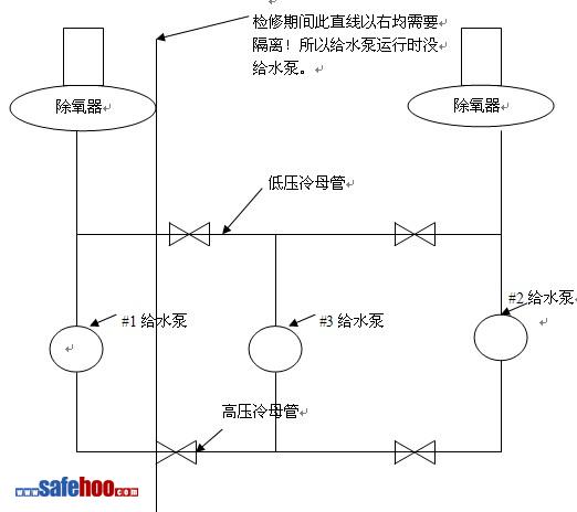 由于需要關(guān)閉低壓母管分段門,高壓冷母管分段門,所以在檢修期間#1機(jī)沒(méi)有備用給水泵。如圖所示: