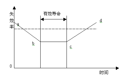 在現行的“氣瓶安全監察規程”中,從設計、制造、運輸、儲存、使用以及氣瓶的材料等方面都做了嚴格的規定,筆者認為主要是考慮氣瓶的使用壽命的問題,防止其失效而喪失使用可靠性。為此,運用“壽命浴盆曲線”,對氣瓶的失效進行分析(詳見:典型壽命浴盆曲線圖)。