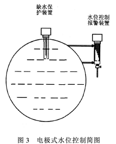當(dāng)然,由于浮球式水位裝置固有的結(jié)構(gòu)特點,隨著鍋爐使用時間增加后,浮球連桿卡住、漏水,水銀開關(guān)動作不靈活等故障會偶有發(fā)生,2006年初,我們進一步將浮球式水位裝置改造為電極式水位控制和保護裝置,如圖3。