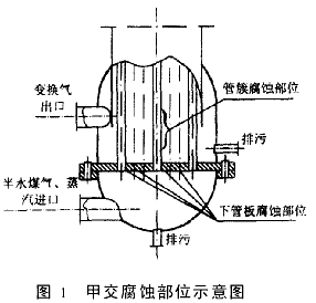 ??? 甲交腐蝕部位見圖1。運行環境見圖2。