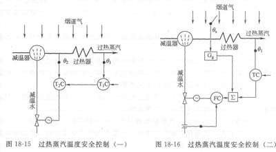 過熱蒸汽溫度安全控制系統的基本方案見圖18—15和圖18—16。