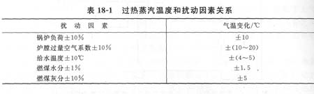 (1)擾動因素多變化大? 表18—1列出了各種擾動因素對過熱蒸汽溫度的靜態影響關系。