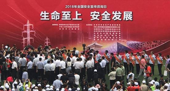 2018年全國安全宣傳咨詢日活動在北京設立主會場,國務委員王勇出席參與了安全咨詢講解和應急互動體驗,現場約3000人參加了主會場活動。