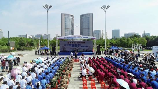 江西省安全宣傳咨詢日活動在鷹潭市市民廣場舉行,副省長吳曉軍出席并宣布宣傳咨詢日活動啟動。