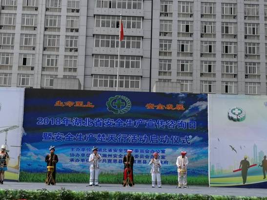 湖北省安全宣傳咨詢日活動現場,原創(chuàng)安全生產歌舞和方言喜劇小品表達出群眾對安全發(fā)展的關切。