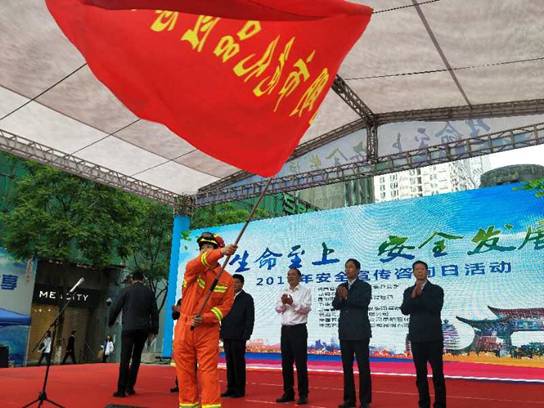 河北省在石家莊市舉辦全省安全咨詢日主會場活動,副省長李謙為安全生產志愿者代表授旗啟動“安全進萬家、幸福你我他”主題志愿服務活動。