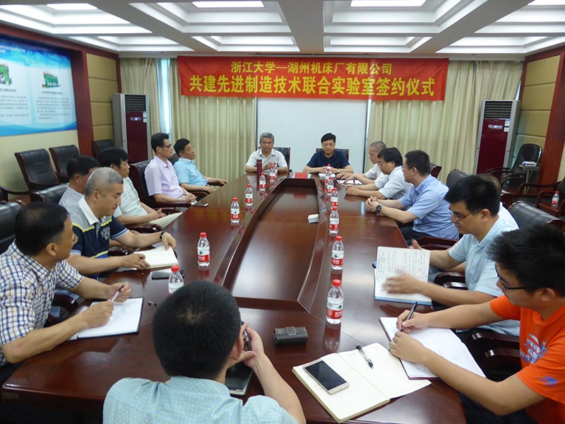 在湖州市被列入“中國制造2025”試點示范城市及召開動員大會后,湖州機床廠有限公司立即行動起來,薛鋒董事長第一時間對大會精神進行傳達貫徹,同時結合本公司正在開展的產品轉型升級、高端裝備智能制造規劃,前往浙江大學與浙江大學機械工程學院設計工程及自動化研究所譚建榮院士團隊進行面對面洽談。雙方一拍即合,決定合作建立“浙江大學—湖州機床廠有限公司液壓裝備創新設計與智能制造聯合實驗室。