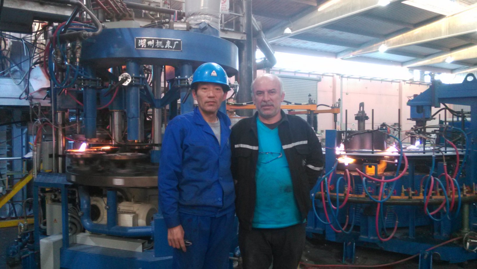 下圖是該分廠出口土耳其全自動玻璃器皿生產線在土耳其生產現場安裝調試與試生產情形: